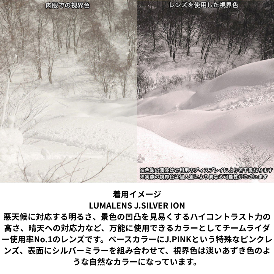 ご利用シーン:スノーボード、スキー、バックカントリーなどウィンタースポーツ全般に最適。日差し変化が大きい環境でも対応できる万能型ゴーグルとしてお勧めです。