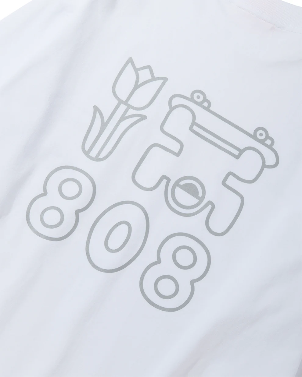 YMOからカニエ、NEWJEANSまで、1980年代に登場し今もカルト的な人気を誇っている伝説の日本製リズムマシンをオマージュ。そこにチューリップとスケートするモノアイのモンスターで調和とカオスの両方を表現。アメリカ、イギリスをはじめ10ヵ国以上のレーベルから曲をリリースしている音楽プロデューサーで、異次元の脱力系イラストレーターという顔を持つGUCHONによるグラフィック。ざらっとした質感のUSコットンヘビーウエイトボディ。