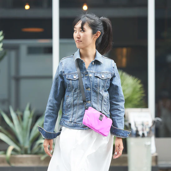 縦型スリングが多い中、ミニマルにつかる横型スリングです。