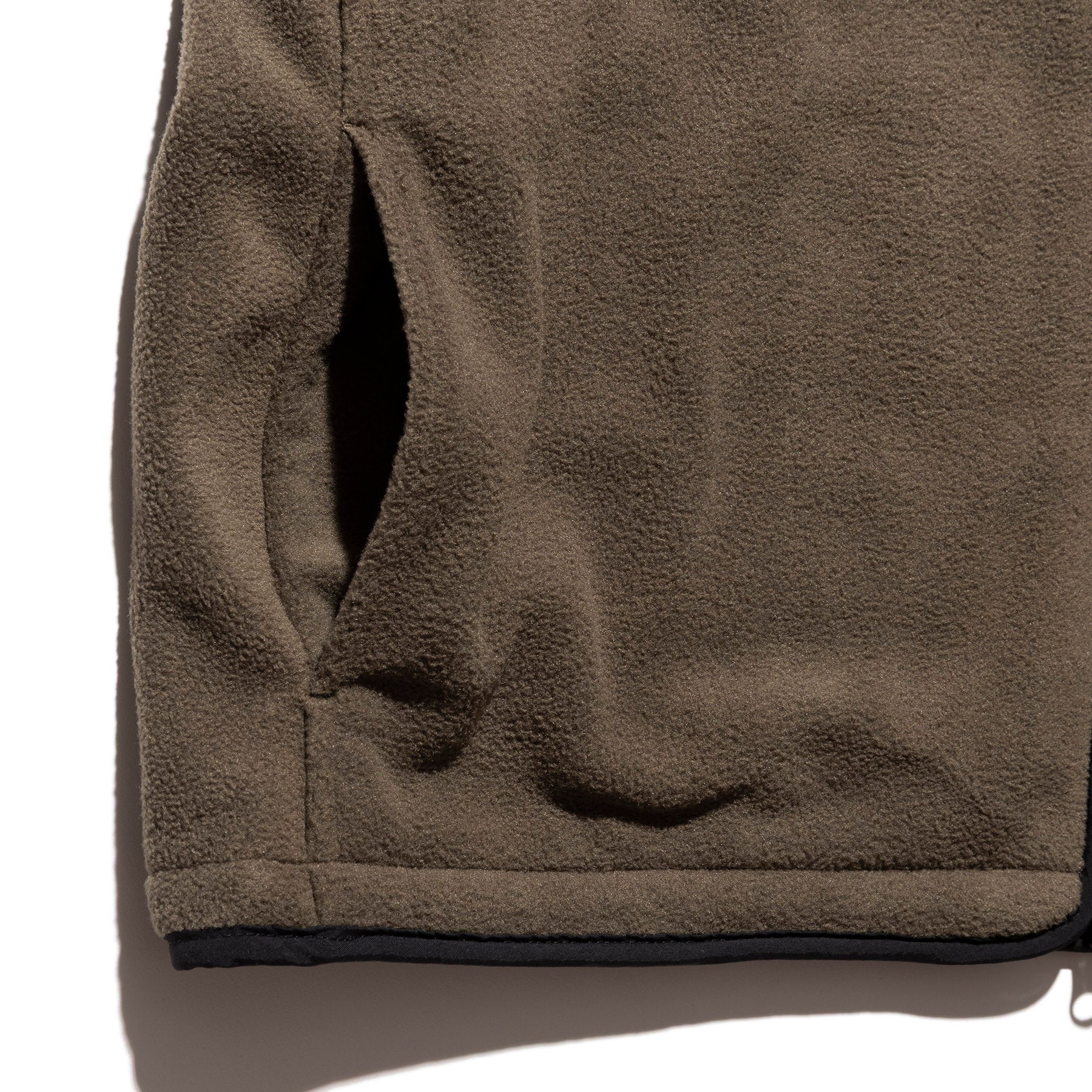 表地には風合い高く仕上げられた厚手のフリースで、フロントZIP部分にパイピングを施しました。