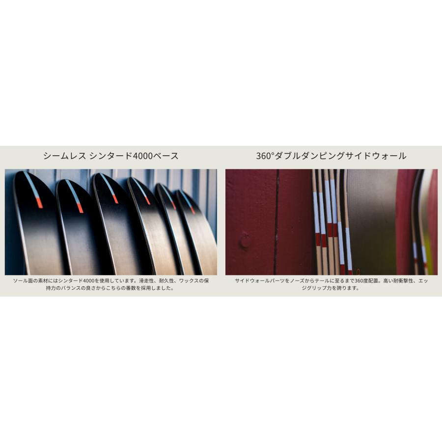 ツインシェイプに近いディレクショナルシェイプを採用し、操作性と安定感を両立。ハイブリッドキャンバー構造によりエッジグリップの強さと浮力を兼ね備え、雪質や斜面を問わず自在なライディングを楽しめます。